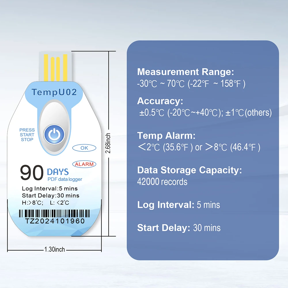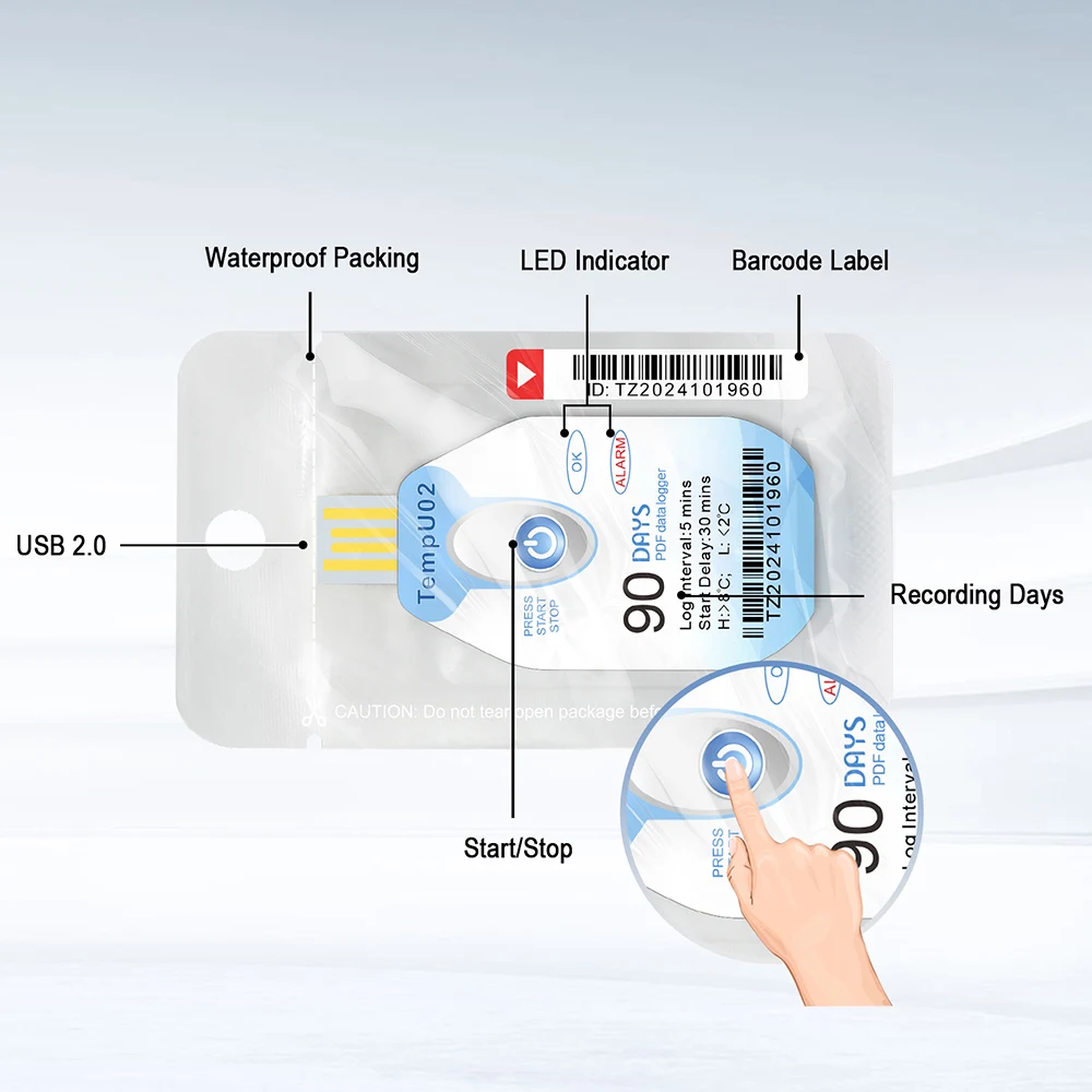 Disposable USB temperature recorder is a simple and portable temperature recorder specially designed for cold chain.This product is widely used to the transportation and storage process of food, and products.