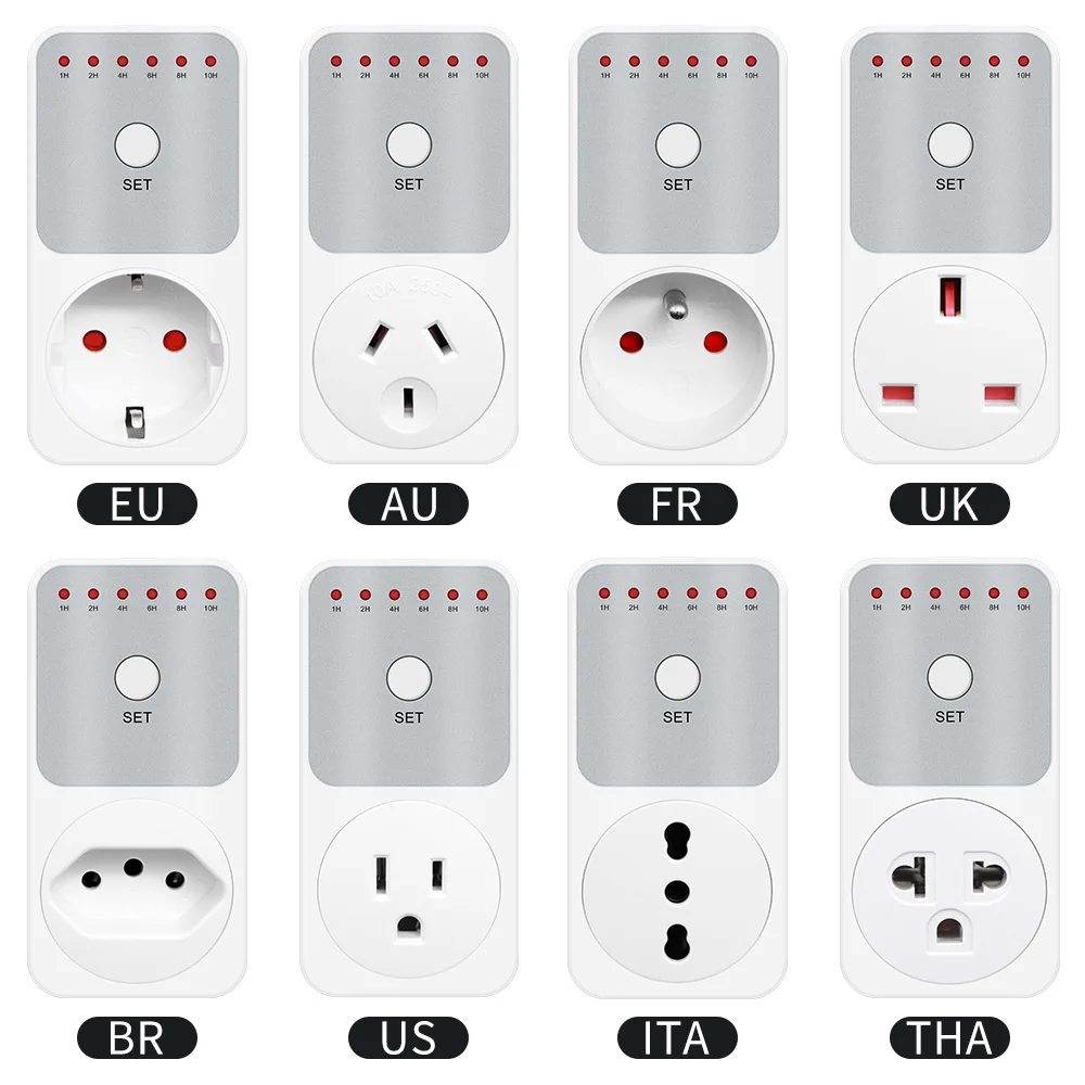 10Hr Countdown Timer Switch Socket Electronic 8 Plug Power Meter Intelligent Time Setting Control Socket Smart Control Plug-In