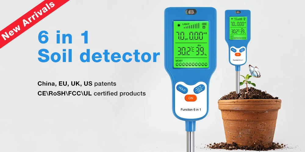 Integrates 6 testing functions of soil fertility, pH, temperature, humidity, light, and air humidity in one, guarding the growing environment of plants in all aspects and providing scientific growing conditions for your plants. With this product, regardless of changes in light intensity or fluctuations in environmental humidity, you can quickly and reliably understand the soil condition and adjust it as needed to make the most suitable soil environment for plant growth and improve crop yield and quality. Perfect for pot planting, greenhouse planting, scientific research planting, flower planting, vegetable planting, fruit planting, etc.