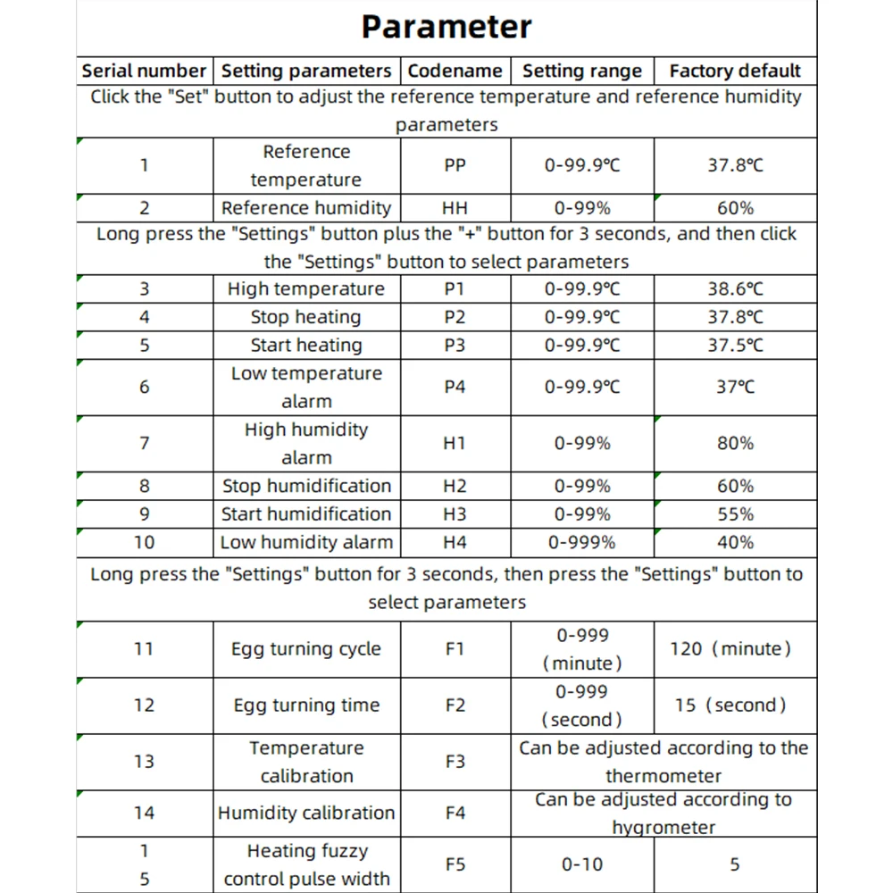 Four digital screens, display hatching countdown, incubation days, temperature and humidity.