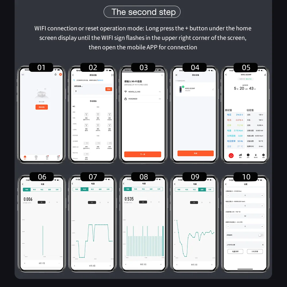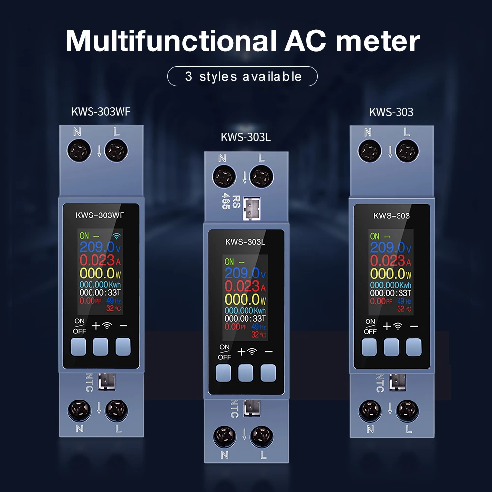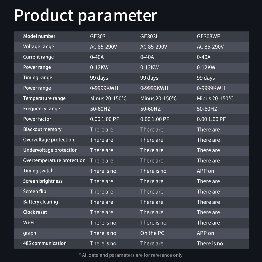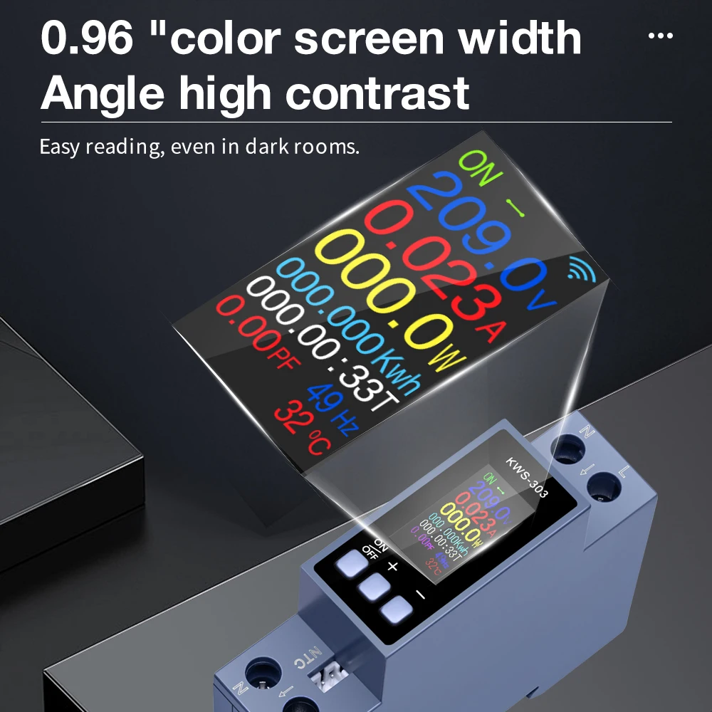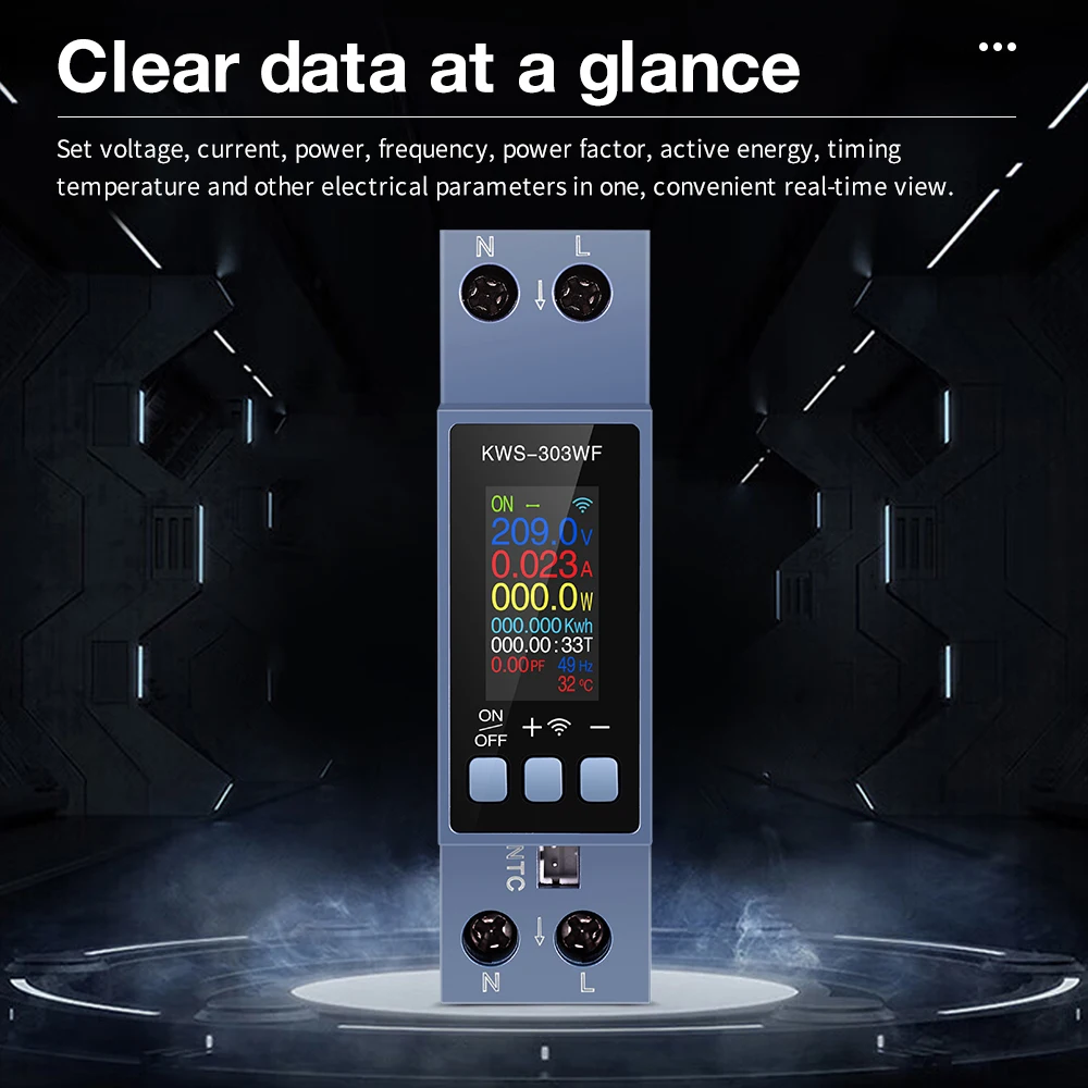 1.8-in-1 digital display: Voltage, current, power, frequency, power factor, active energy, timing, and other electrical parameters are displayed on the same screen, making it easy to see and view in real-time.
