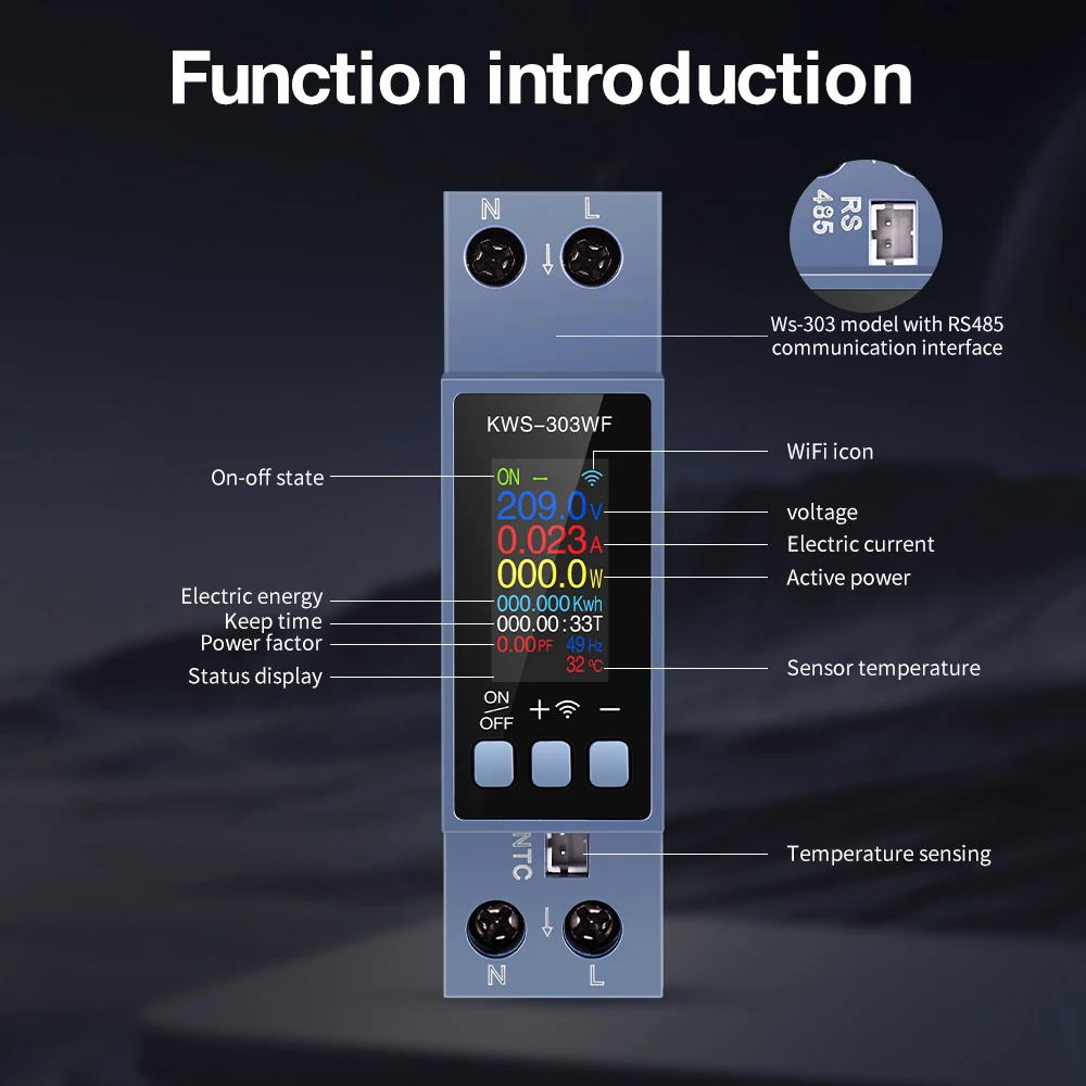 KWS-303 40A Tuya WIFI Smart Switch Circuit Breaker LED Power Energy Meter KWh Timer Relay Remote Control Smart Life APP