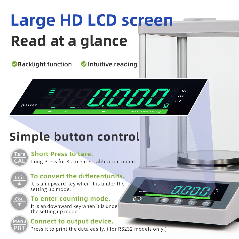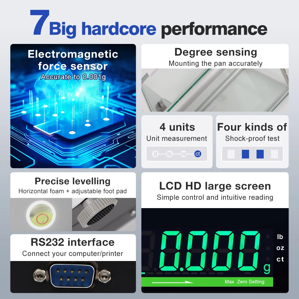Precision Balance 0.001g Analytical Lab Electronic Balance Precision LCD Display Weighing Scales for Laboratories Research