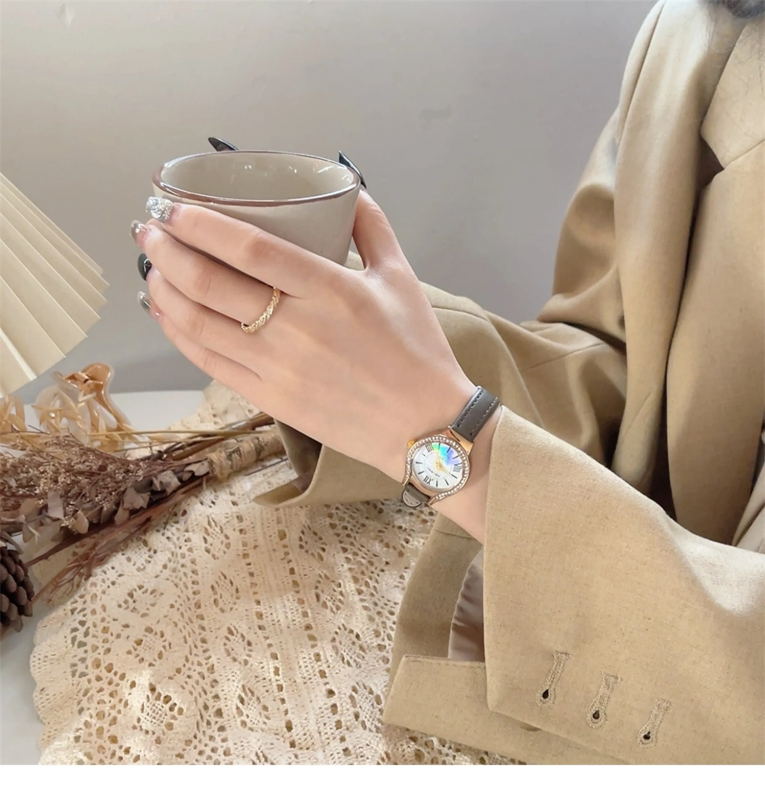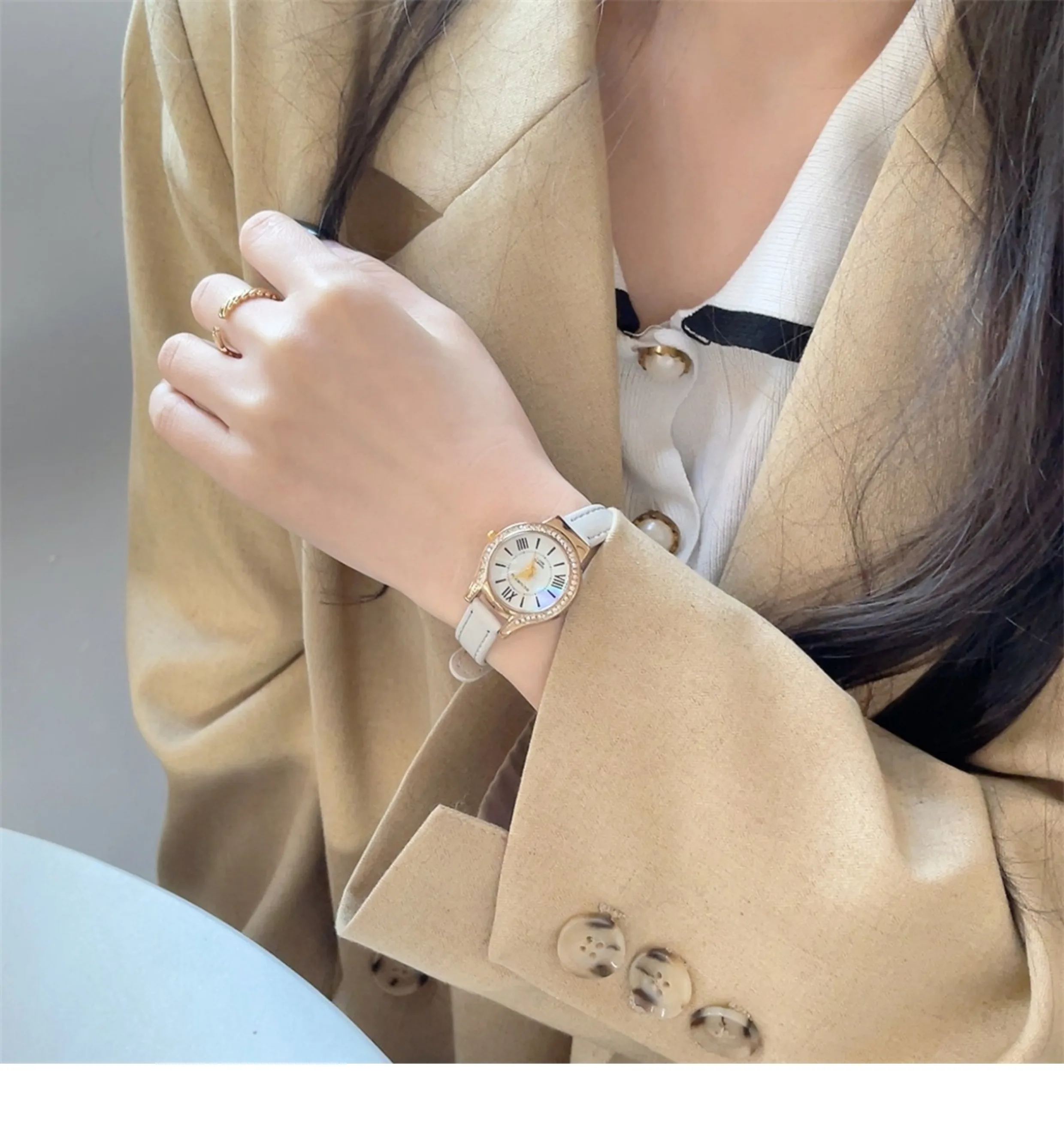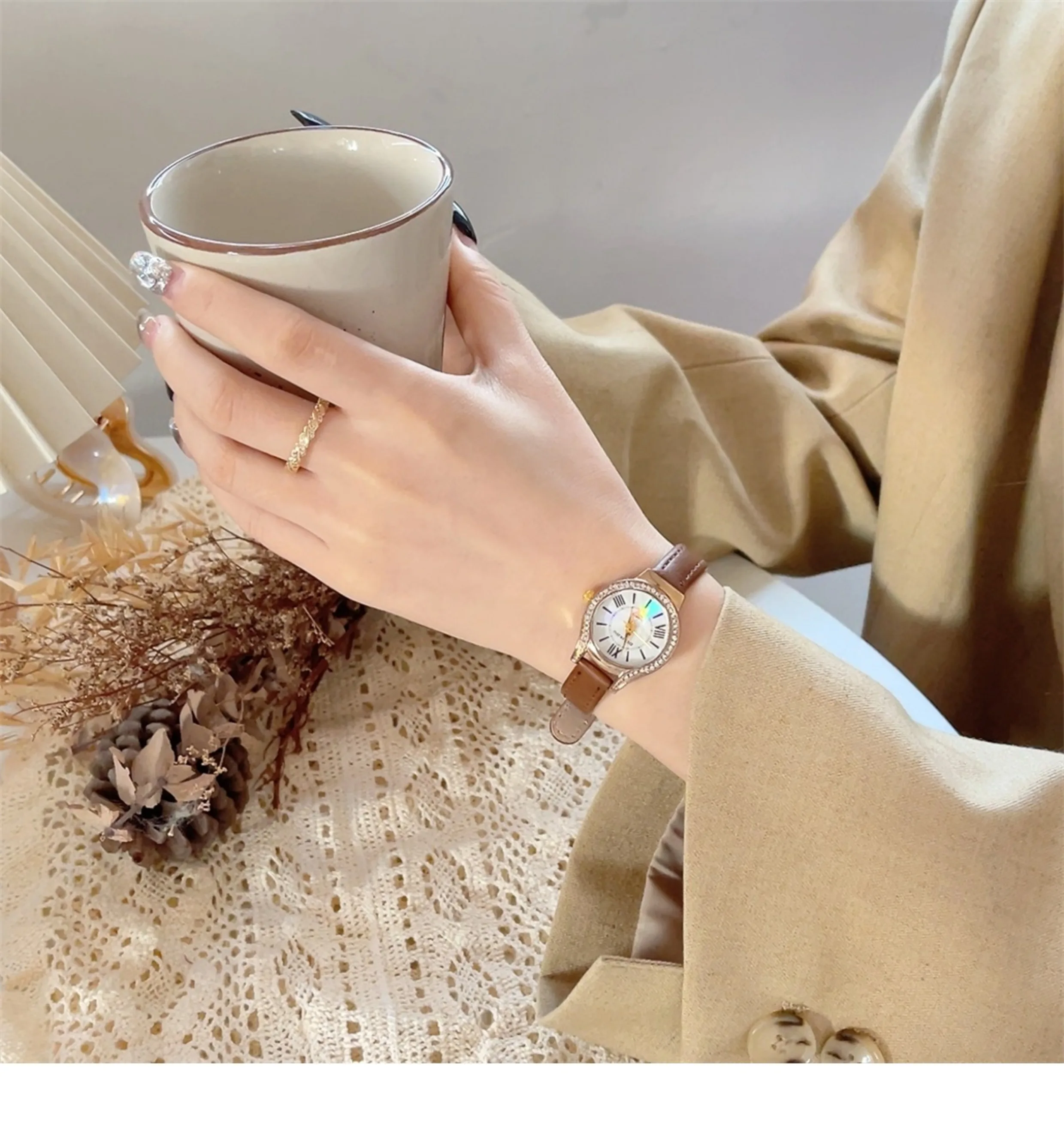 Women Brown White Small Watches Versatile Thin Strap Leather Band Ladies Quartz Watch Wristwatch Clock Reloj Mujer
