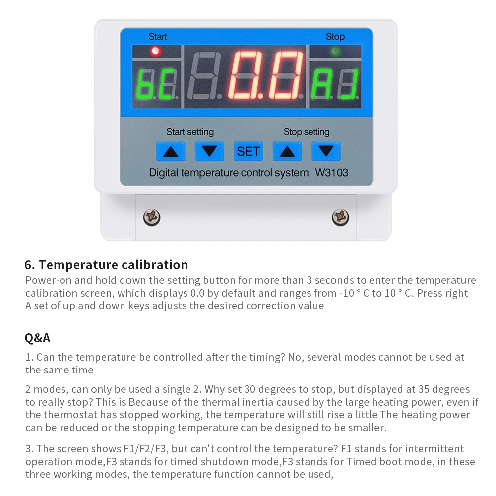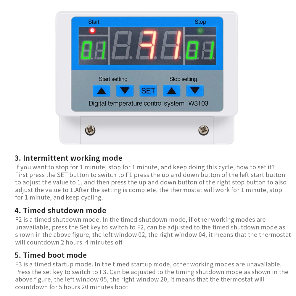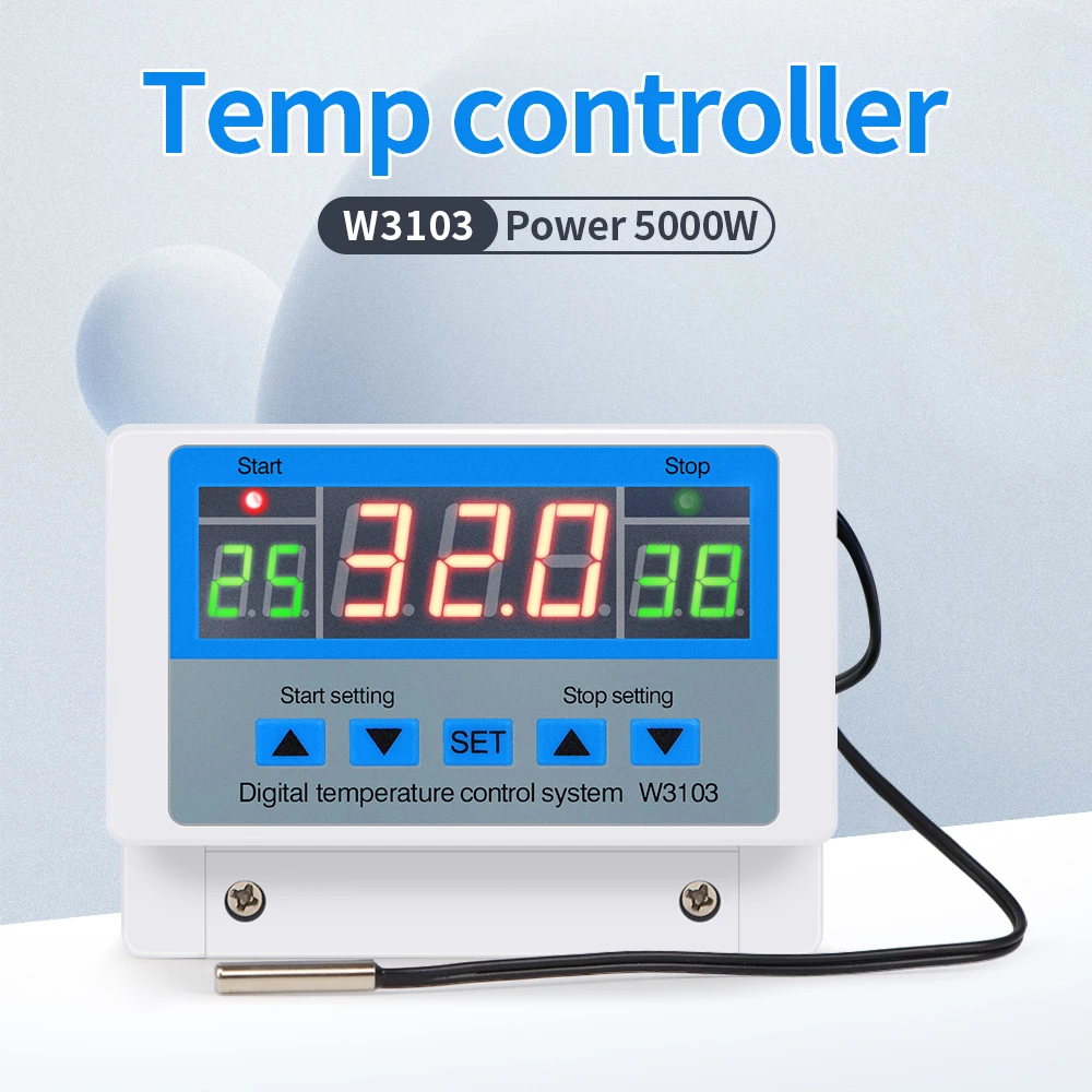 XH-W3103 Digital Temperature Controller 220V/12V Max 5000W Digital Thermostat 30A -19 to 99℃ Temperature Controller Switch LCD
