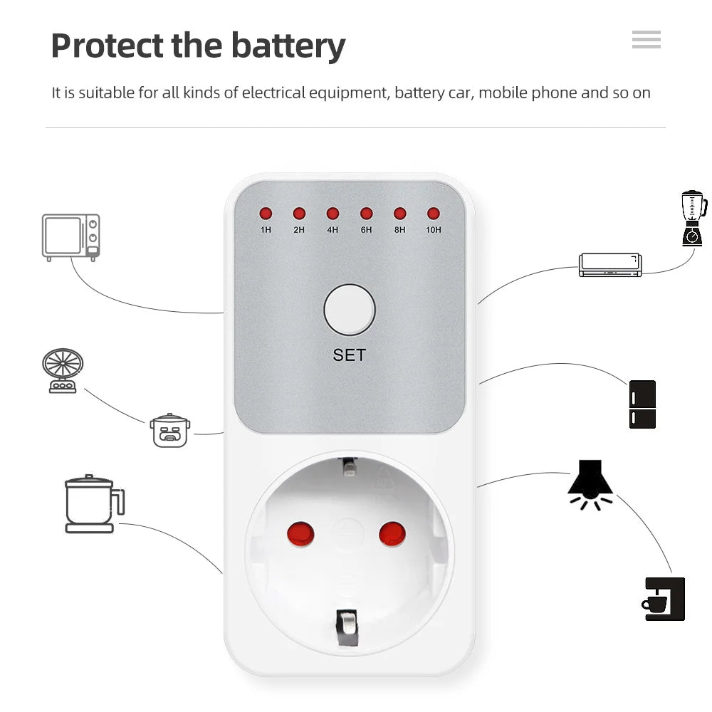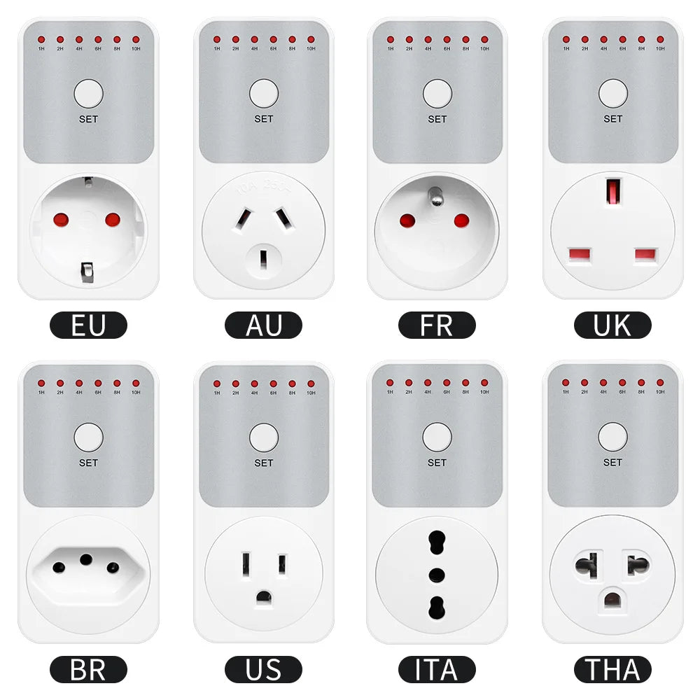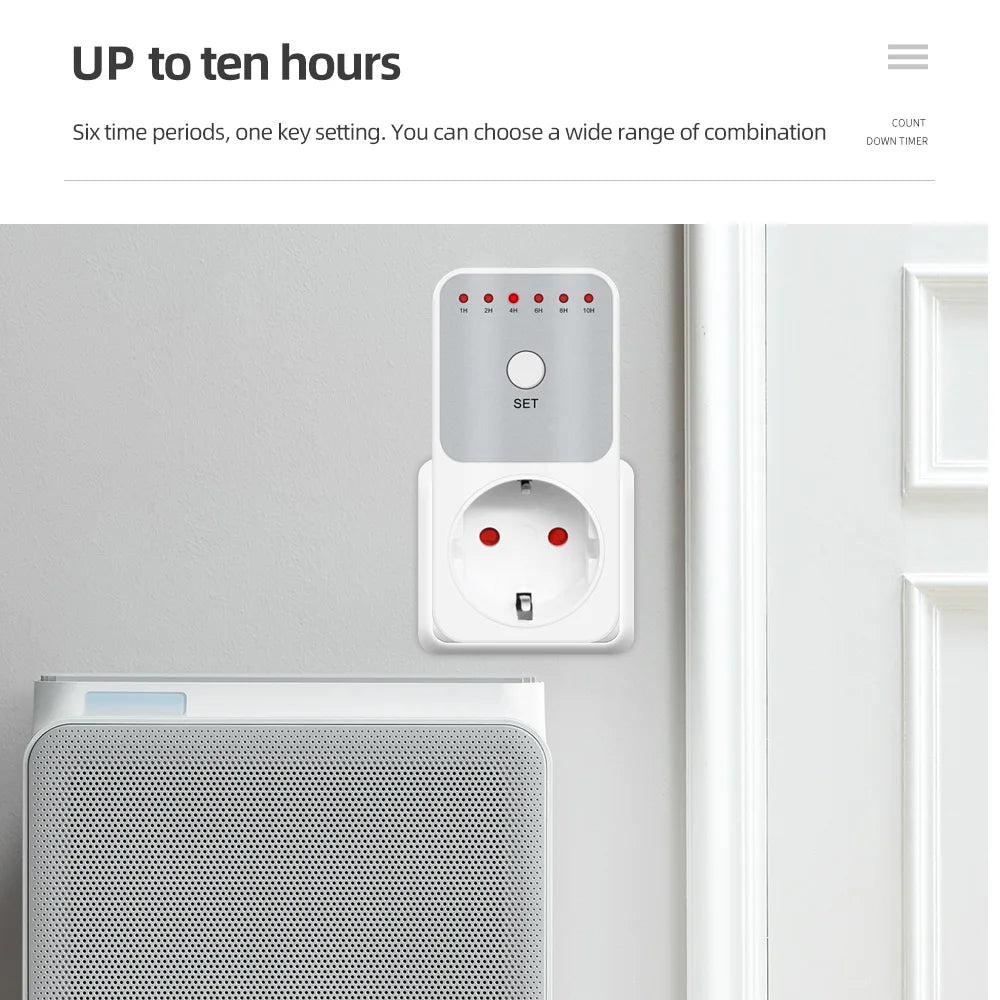 10Hr Countdown Timer Switch Socket Electronic 8 Plug Power Meter Intelligent Time Setting Control Socket Smart Control Plug-In