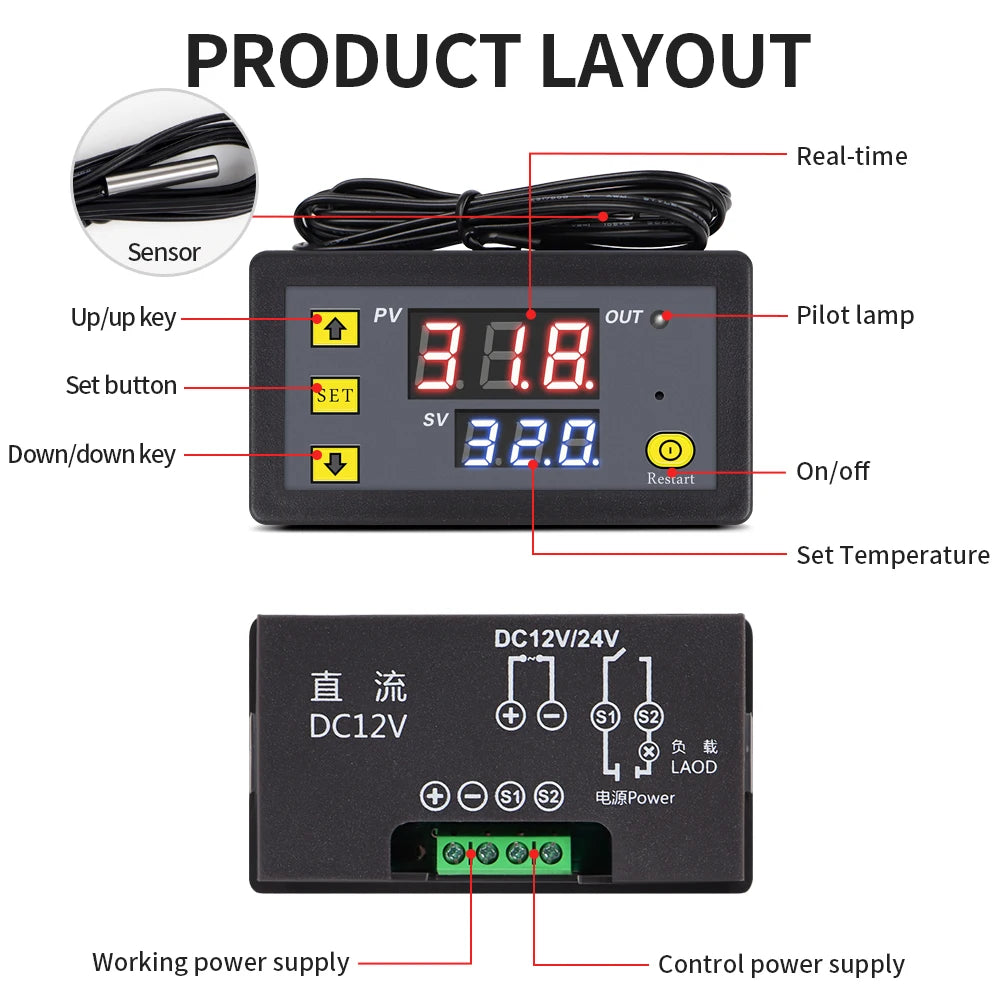 DC 12V Digital Temperature Controller with Remote Control NTC Sensor Thermostat Regulator for Refrigerator Indoor Freezer