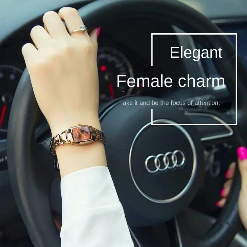 Elegant Women Quartz Watch Luxury Classic Rose Gold Tungsten Stainless Steel Color Band Watches Ladies Wristwatch