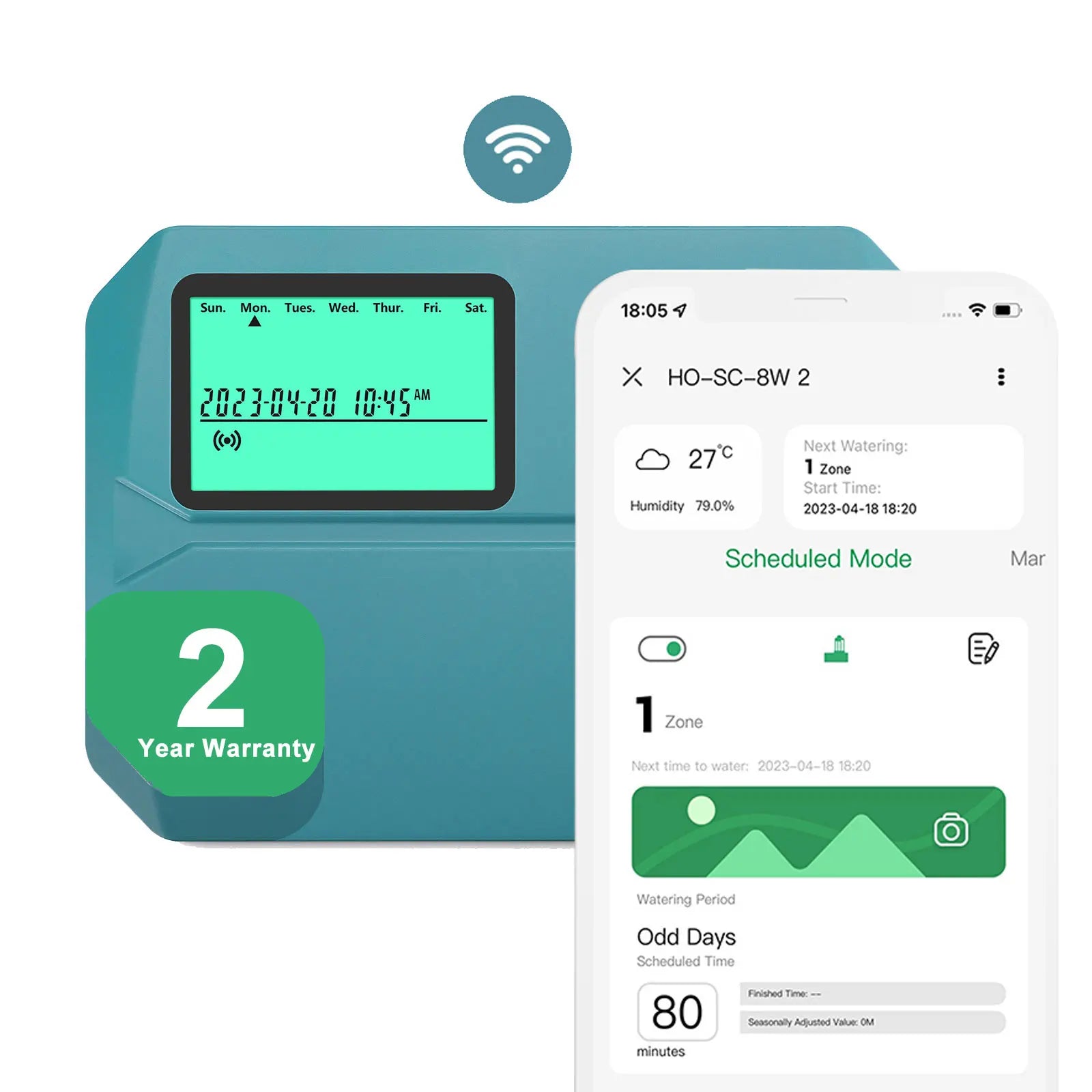 8-zone sprinkler: the intelligent sprinkler control is designed to control the irrigation of up to 8 zones. It supports automatic watering mode and manual watering mode to meet the different water requirements of each zone.