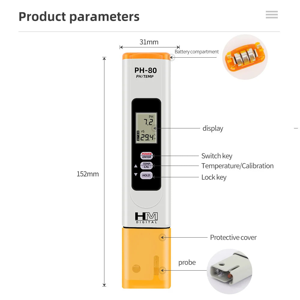 HM Digital PH-80 Waterproof PH Temperature Meter Hydro With Automatic Calibration Function Water Quality PH Tester 40% Off