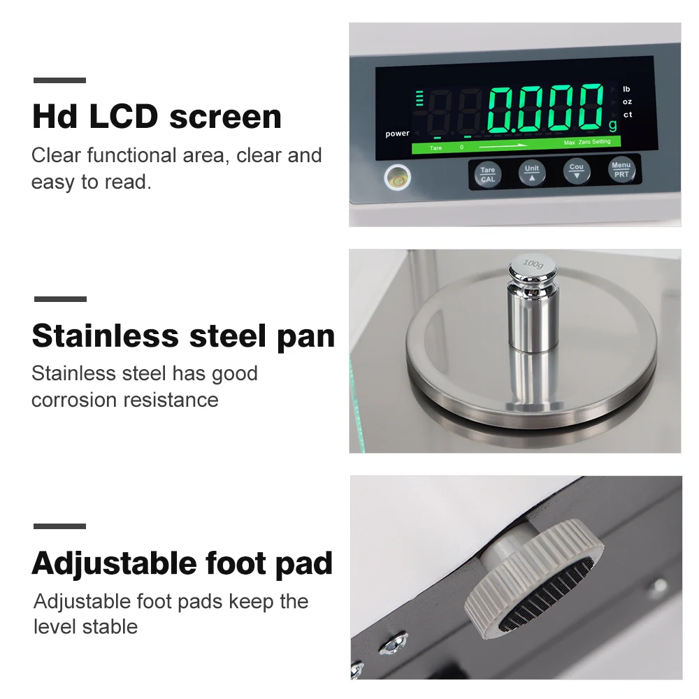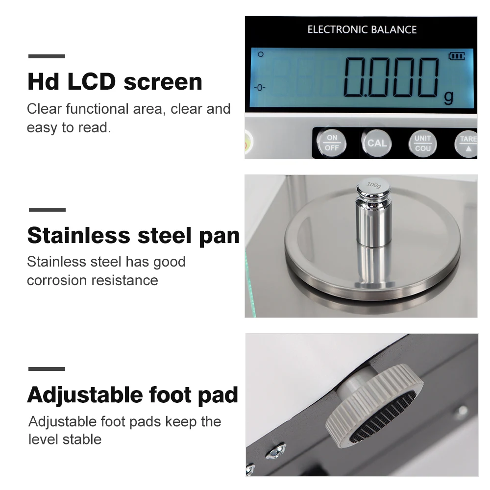 Precision Balance 0.001g Analytical Lab Electronic Balance Precision LCD Display Weighing Scales for Laboratories Research