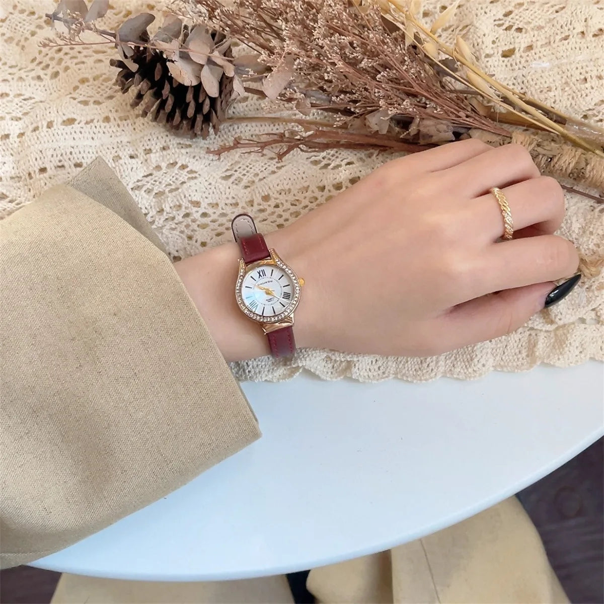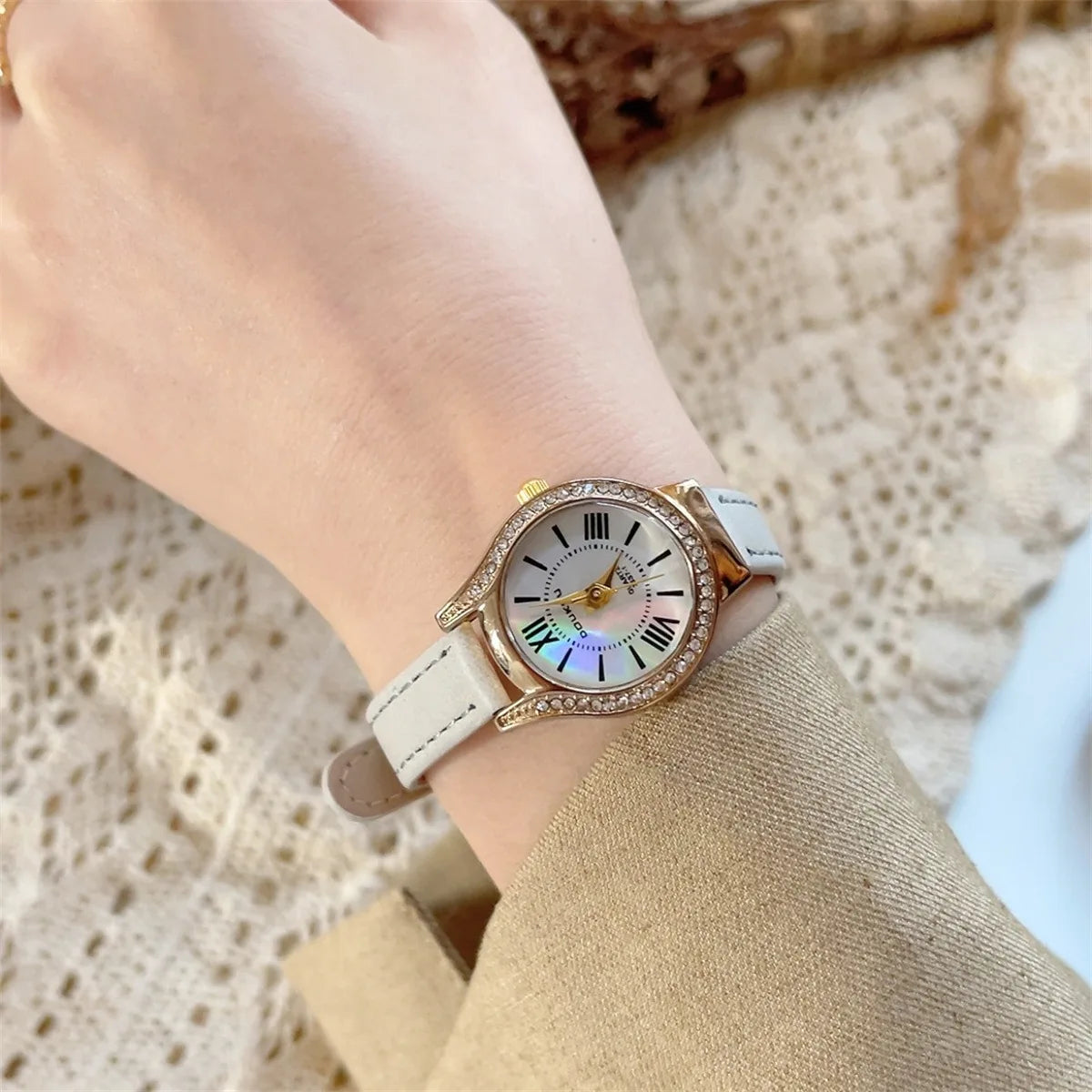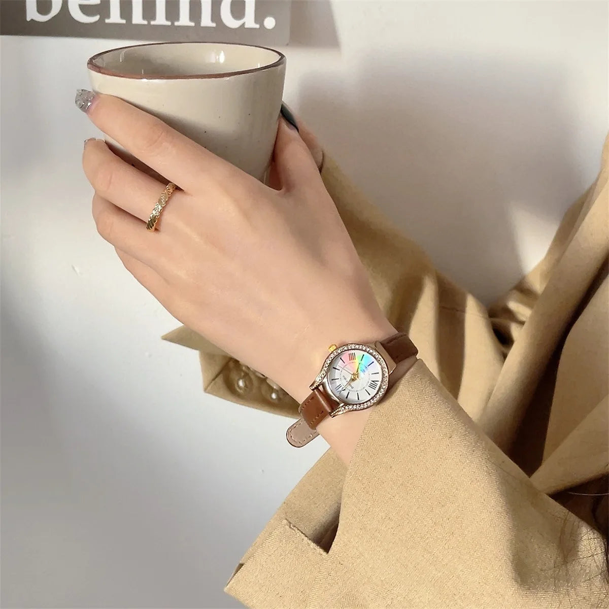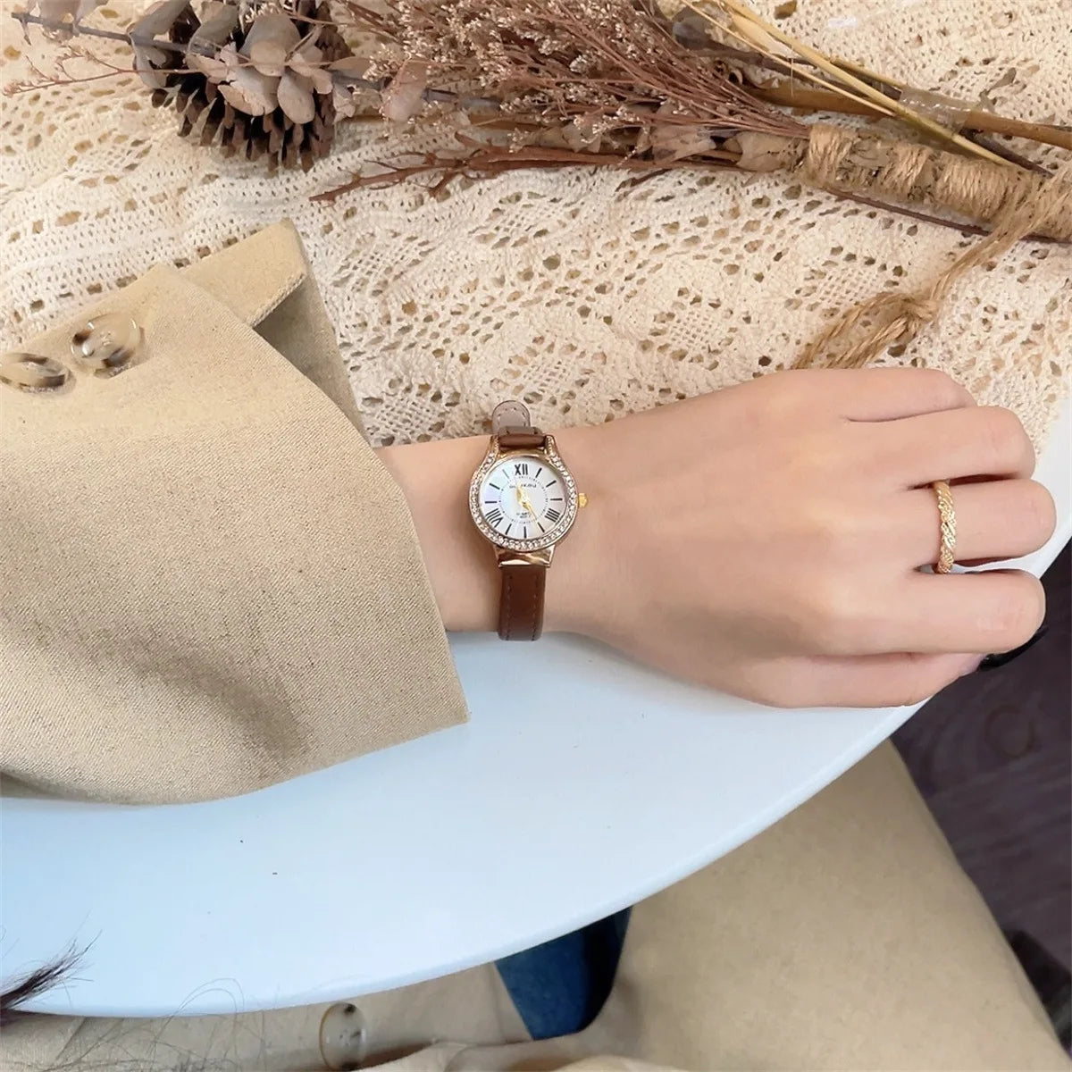 Women Brown White Small Watches Versatile Thin Strap Leather Band Ladies Quartz Watch Wristwatch Clock Reloj Mujer